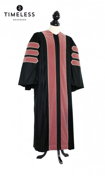• 10 cm breiter lachsrosaner Samtbesatz an Vorder- und Rückseite